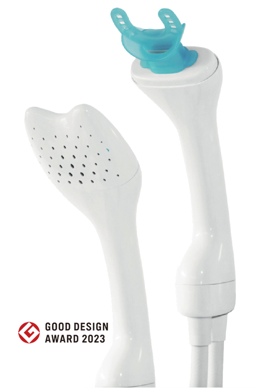 排水機構を独自に持ち、くわえるだけで口腔内全体を洗浄することを可能にした特許取得商品です。